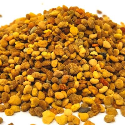 Bee pollen is a ball of pollen made by young bees when they land on a flower. It’s a mixture of pollen, saliva, and nectar or honey. Bees carry these balls back to the hive in sacs on their legs and store them in the hive’s honeycomb. The pollen then ferments into “bee bread,” which feeds a bee colony. Beekeepers collect pollen from bees by keeping a thick comb in the entrance of their hives. When bees pass through it, it knocks the pollen off their legs into a collection bin below. The bees then must go out to collect more pollen.